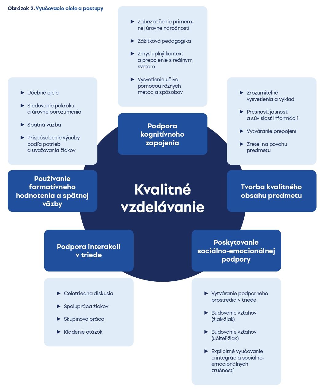 Ku každému cieľu sú vypracované praktické otázky a konkrétne odporúčania rozdelené do troch perspektív: čo má robiť učiteľ, čo majú robiť žiaci a ako nastaviť štruktúru úlohy, činnosti alebo učiva.