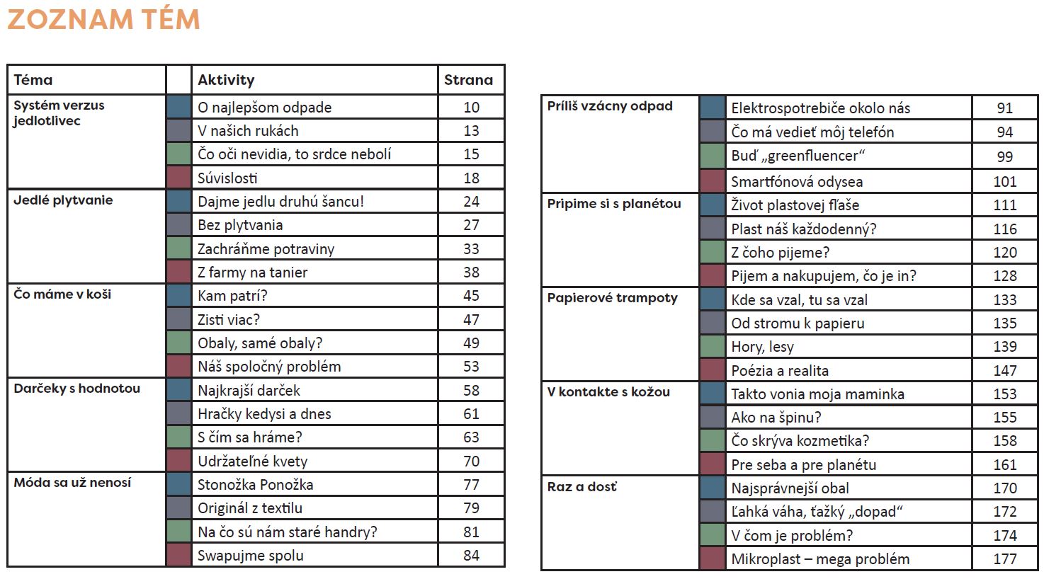 Metodická príručka Slovenskej agentúry životného prostredia (SAŽP) obsahuje 10 kompletne spracovaných tém s aktivitami o odpade pre materské, základné (1. a 2. stupeň) a stredné školy.